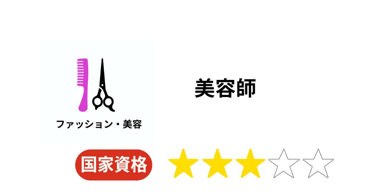 美容師法に基づく国家資格。 カット・カラー・パーマ・メイク・着付けなど、美容施術を行うために必須の免許。 |