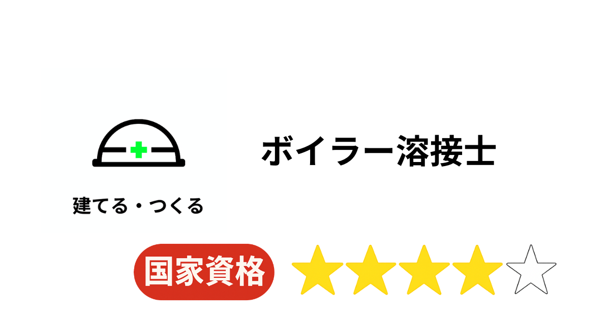 「労働安全衛生法」に基づく国家資格です。 ボイラー・圧力容器などの危険性が高い設備の溶接に必要な資格として位置づけられています。 |
