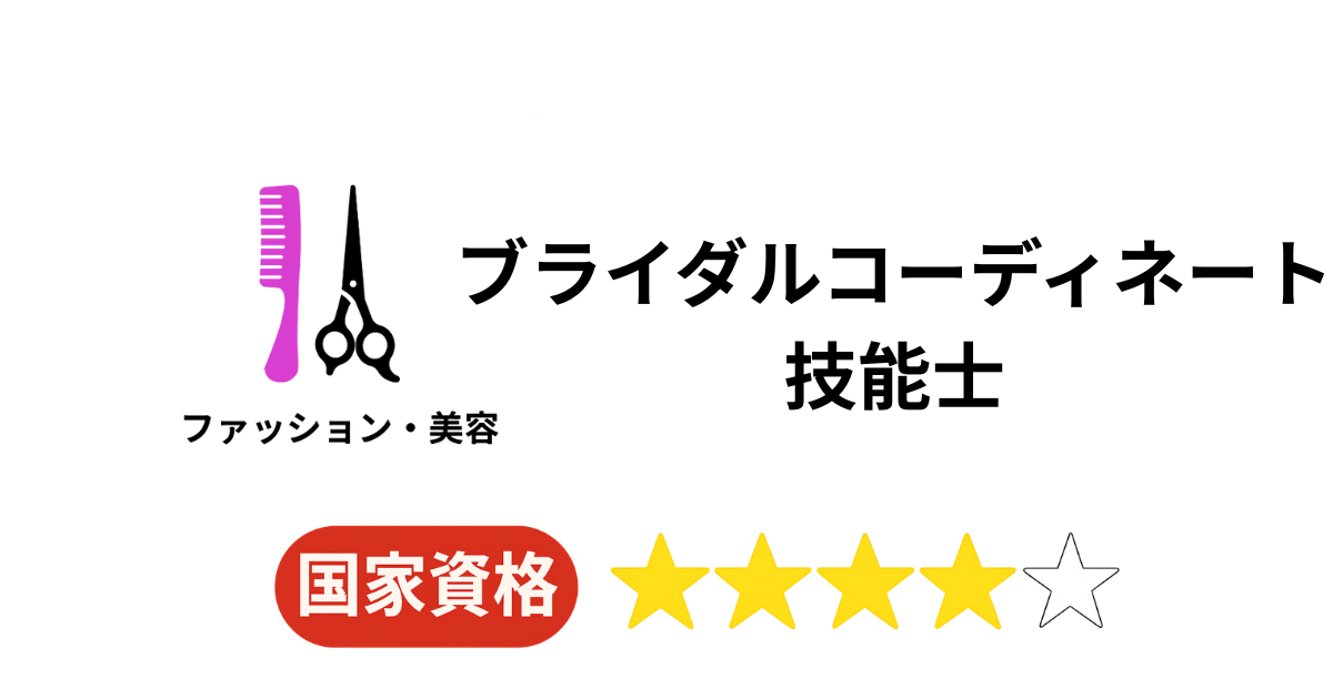 ブライダルコーディネート技能士は、国家資格の一種です。技能検定制度にもとづき、結婚式を総合的にコーディネートするための知識・技能・実践力を、国が一定基準で評価する国家検定です。ブライダル分野では、国家資格として位置づく代表的な資格として知られています。