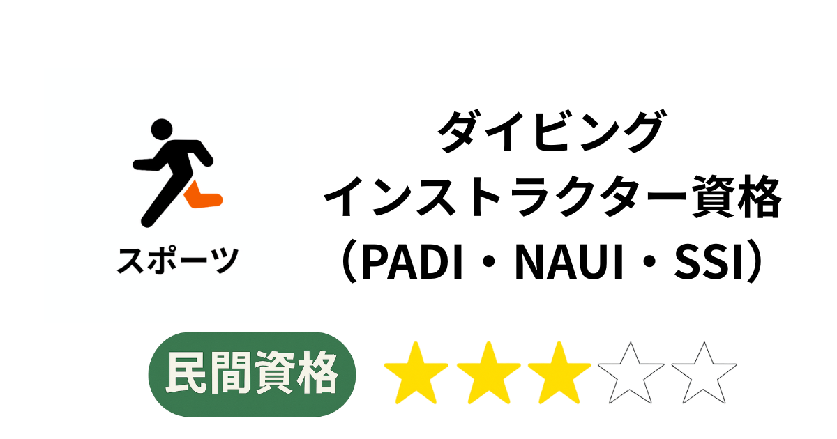 | 資格区分 | 国際民間資格(ダイビング指導者資格)。 |