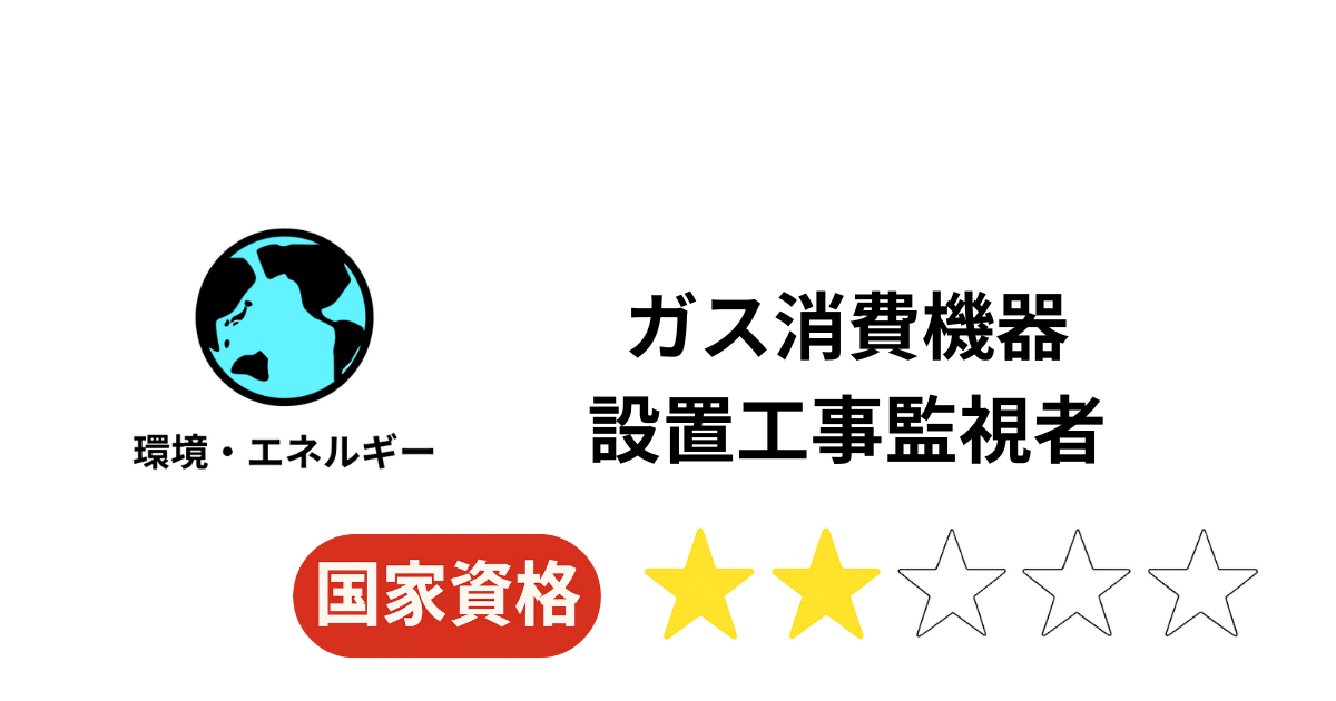 液化石油ガス(LPガス)や都市ガスの設置・改修工事を行う際に必要な安全管理資格。 特にガス販売事業者やリフォーム業者、住宅設備関連業者にとって不可欠な実務資格として位置づけられる。 |