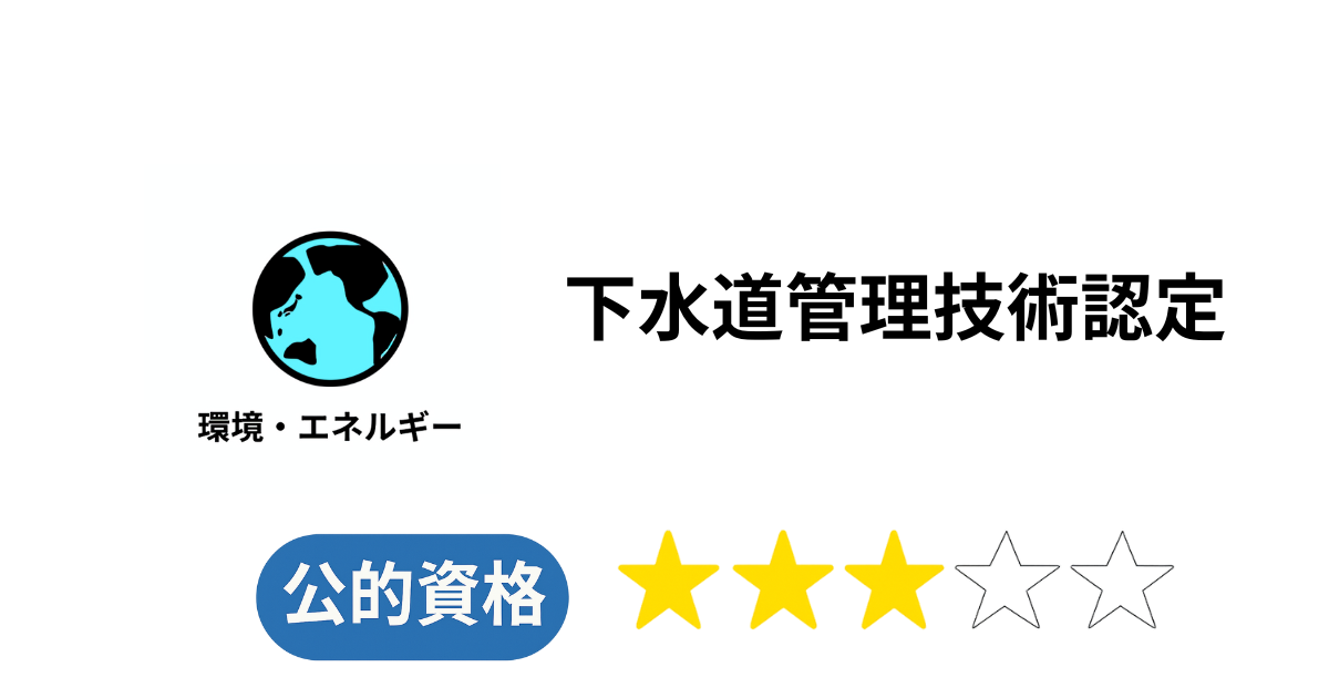 国家資格ではありませんが、自治体や下水道関連企業において評価が高く、実務能力の証明として広く活用されている技術認定です。