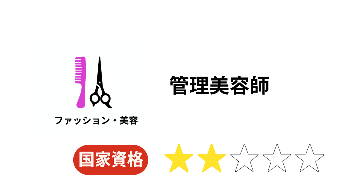 美容師法に基づく国家資格。 美容室の衛生管理・スタッフ指導を適切に行う「管理者」としての能力を認定する。 |