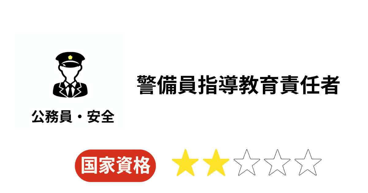 警備会社で「教育責任者」として配置が義務づけられる実務性の高い資格。 新任教育と現任教育の企画・実施を担い、警備品質の維持に不可欠。 |