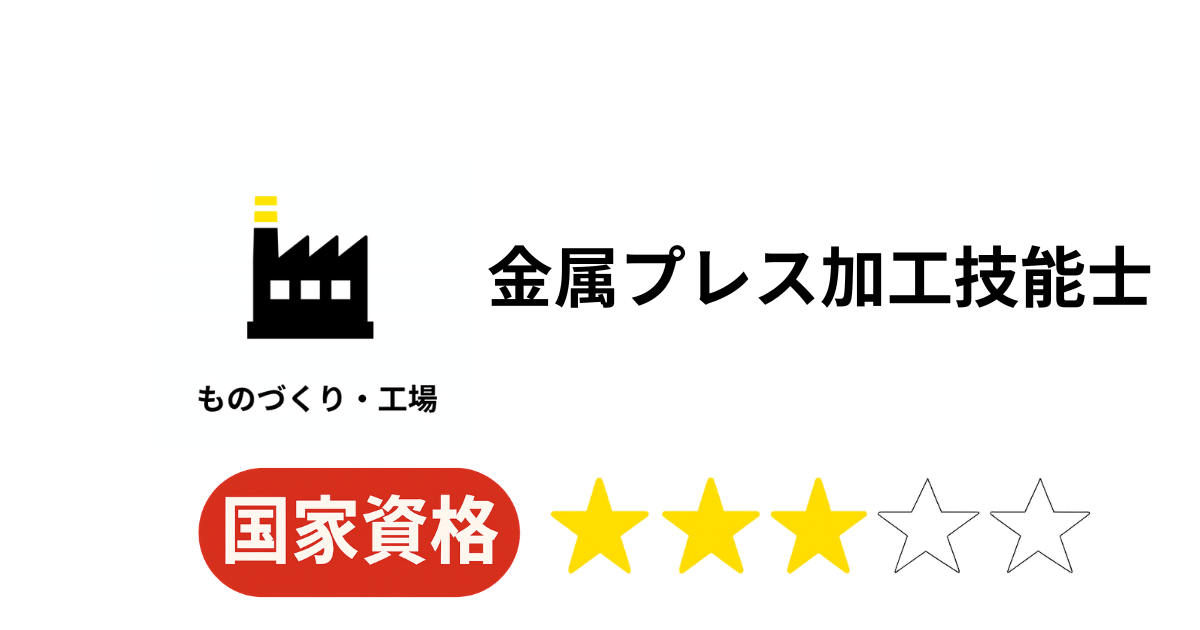 金属プレス加工技能士は、職業能力開発促進法に基づく国家資格(技能検定)で、プレス機械を用いて金属板を成形・打ち抜き・曲げ加工する技能を証明する資格です。