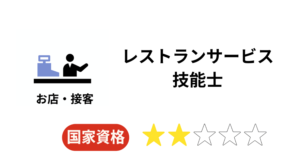 接客技術・マナー・飲料・衛生の知識を備えたサービススタッフとしての能力を証明する国家資格。飲食店のサービス品質を高める目的で設けられている。