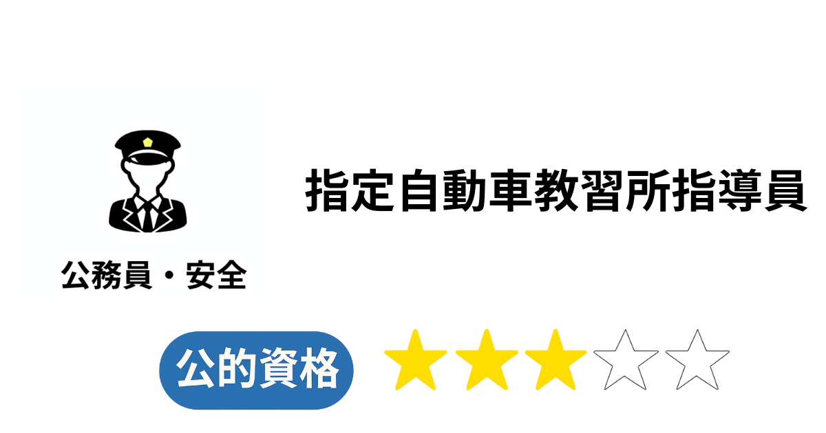 この資格は国家資格ではありませんが、法律に基づいて公安委員会が認定する公的資格であり、業務独占性があります。資格を持たない者が指定自動車教習所で教習を行うことはできません。