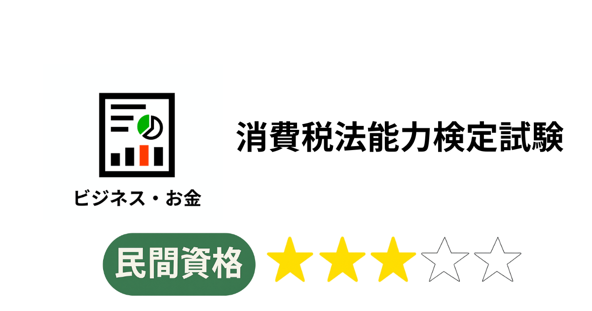 | 資格区分 | 民間資格。消費税に関する知識と実務理解を評価する能力検定です。 |