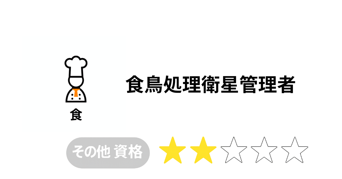 | 根拠法令 | 食鳥処理衛生管理者は「食鳥処理衛生管理者講習会規程」に基づく資格で、 食鳥処理場における衛生確保を目的に設置されている。 |