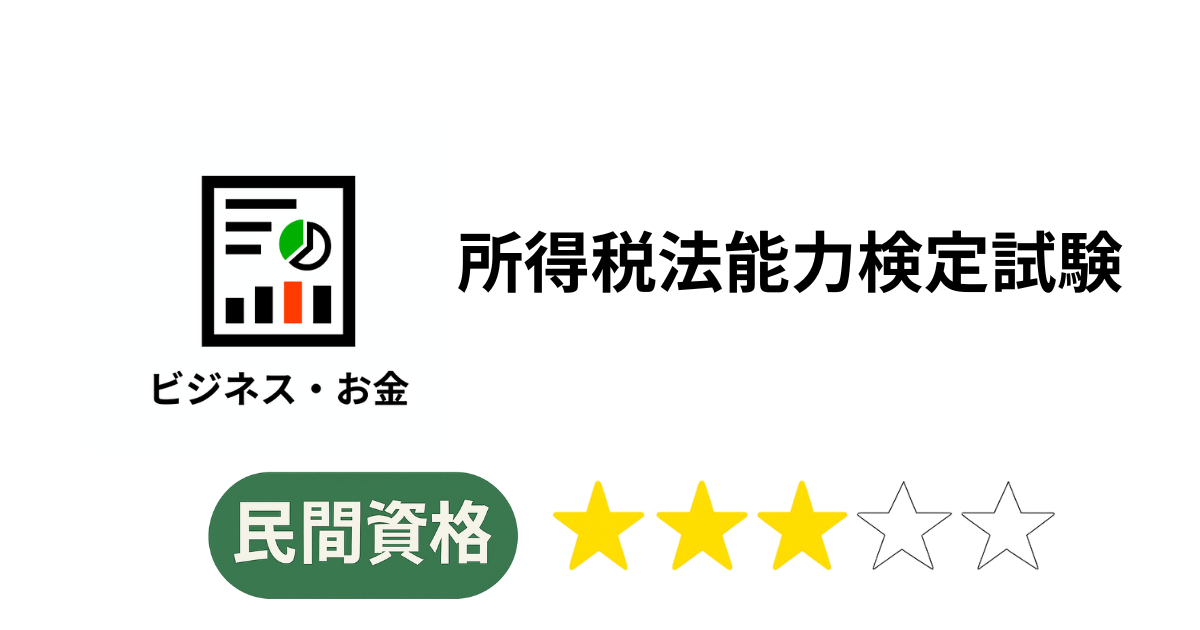 税理士試験の「所得税法」と同じ分野を扱いますが、税理士資格取得を目的とする国家試験ではなく、税務実務の基礎力を確認するための能力検定として位置づけられています。そのため、難易度や出題範囲は実務補助レベルを中心としています。