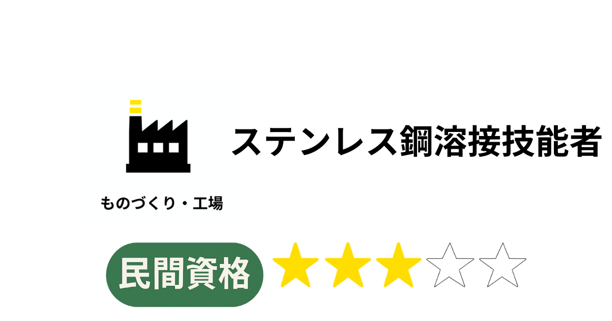 ステンレス鋼溶接技能者は、ステンレス鋼の溶接作業を行う技量を評価する資格で、日本溶接協会が実施する溶接技能者制度の一つです。