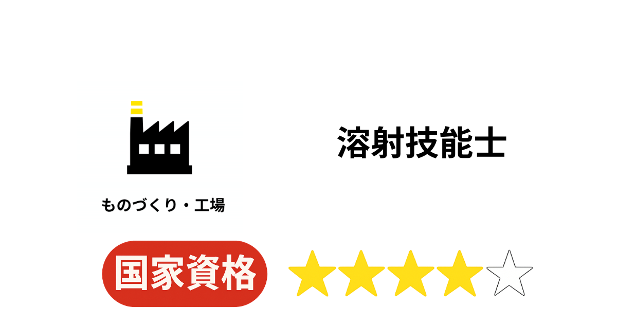 溶射技能士は、職業能力開発促進法に基づく国家資格(技能検定)で、金属やセラミックなどの材料を高温で溶融・加速し、部材表面に皮膜を形成する「溶射加工」の技能を証明する資格です。